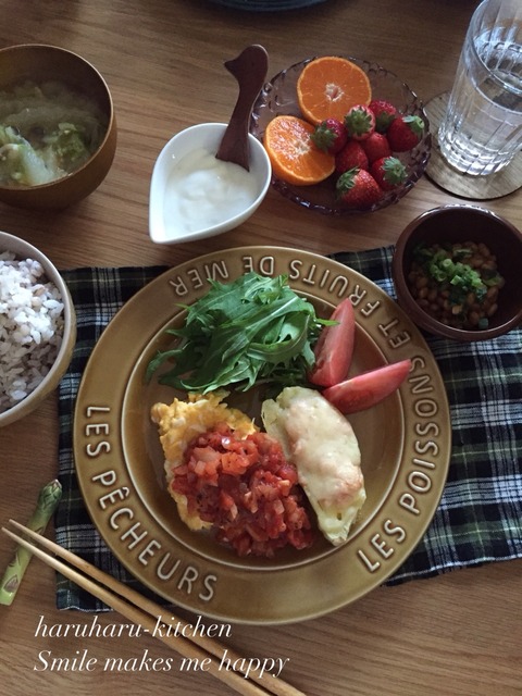 ※お味噌汁の野菜を切ったと同時に、トマトや水菜も同時にカットして、調理の合間に、お皿出したりフルーツ準備したりヨーグルト盛ったり…