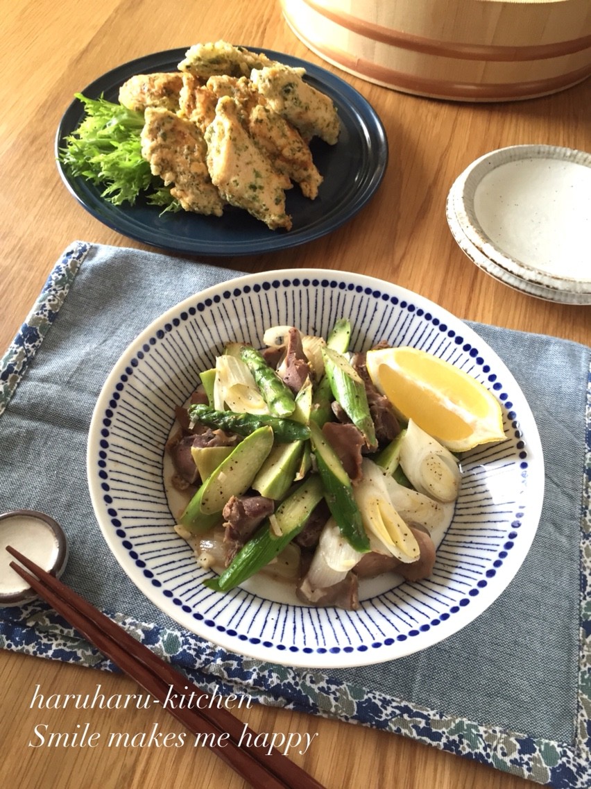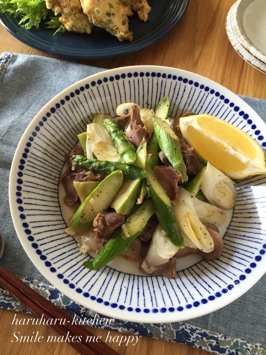 砂肝とアスパラの黒こしょうレモン