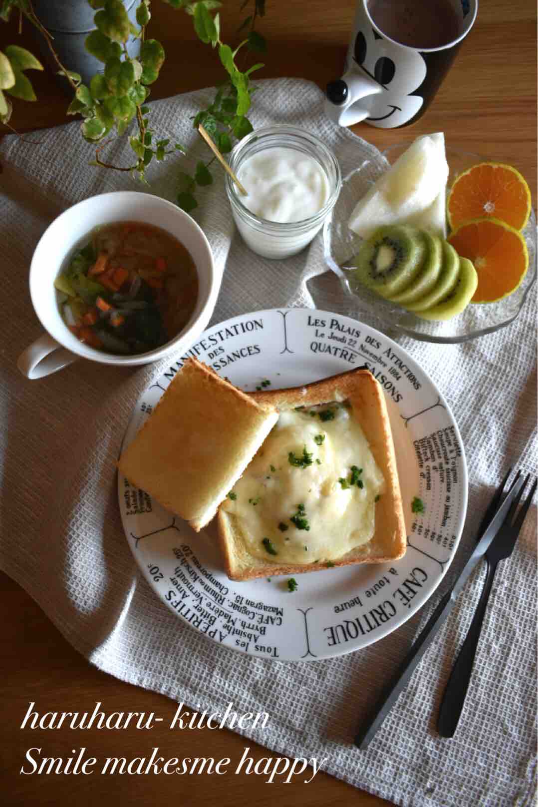 ✳︎くり抜いたパンも一緒に焼いて添えてね