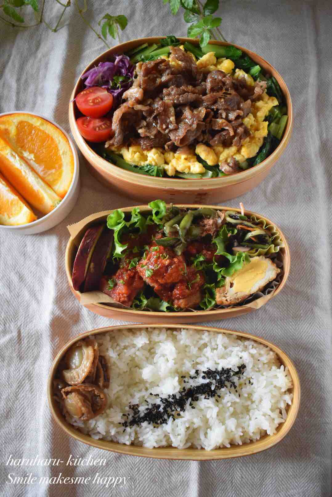 今日も、ちょっと頑張り、いっぱい手抜き(前日のものを入れたり)して、