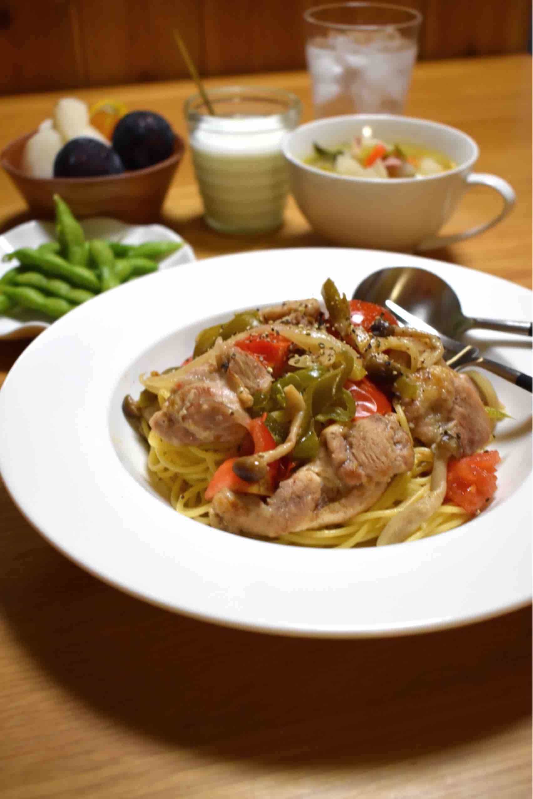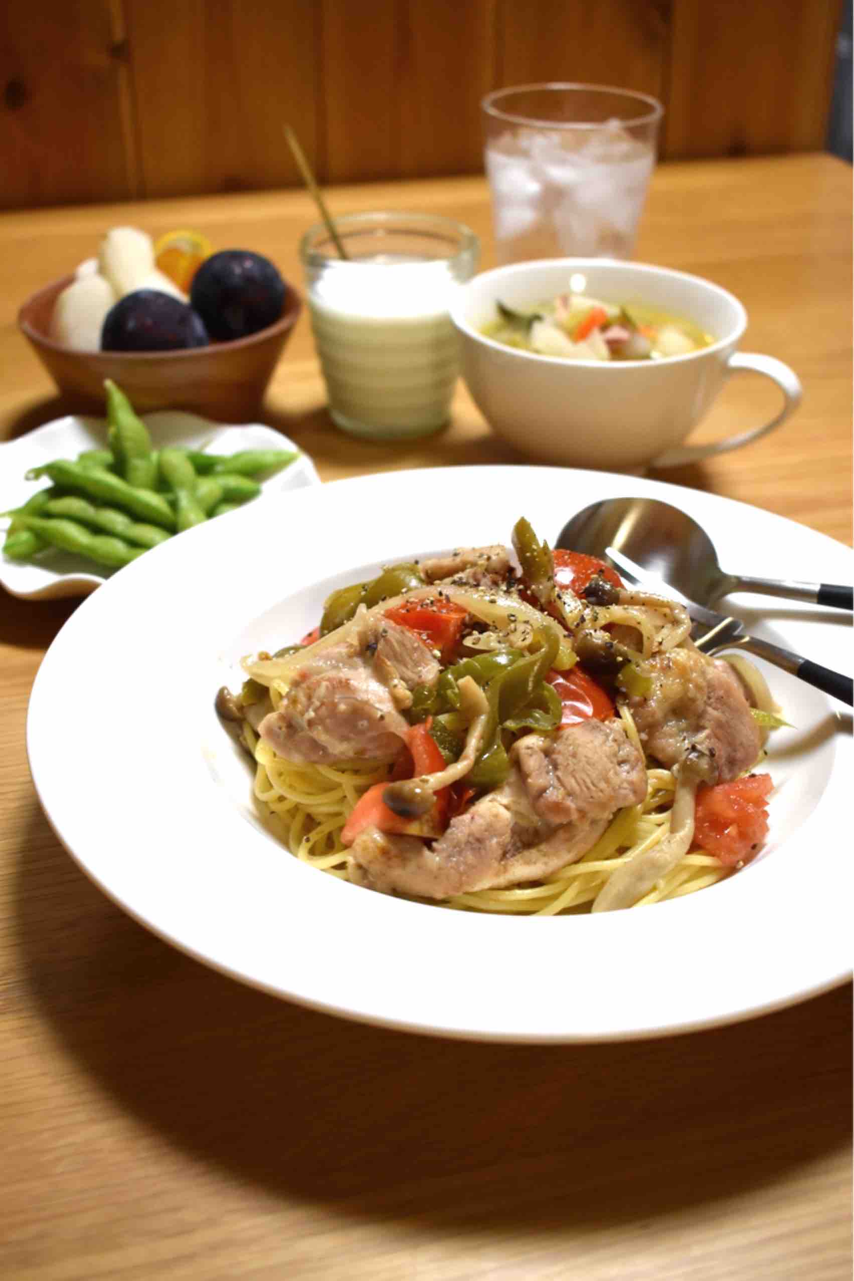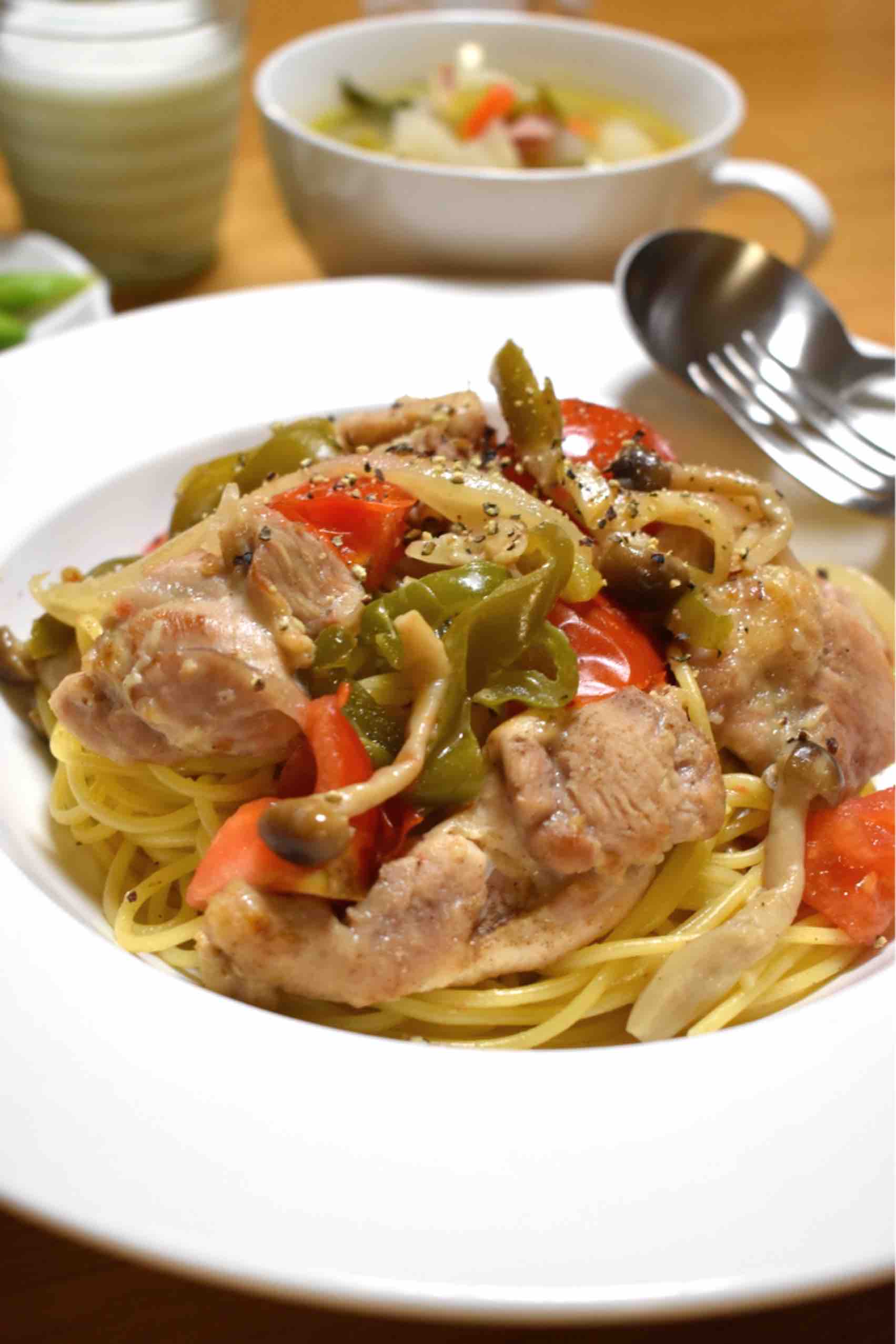 #鶏肉と野菜のシンプルスパゲティ