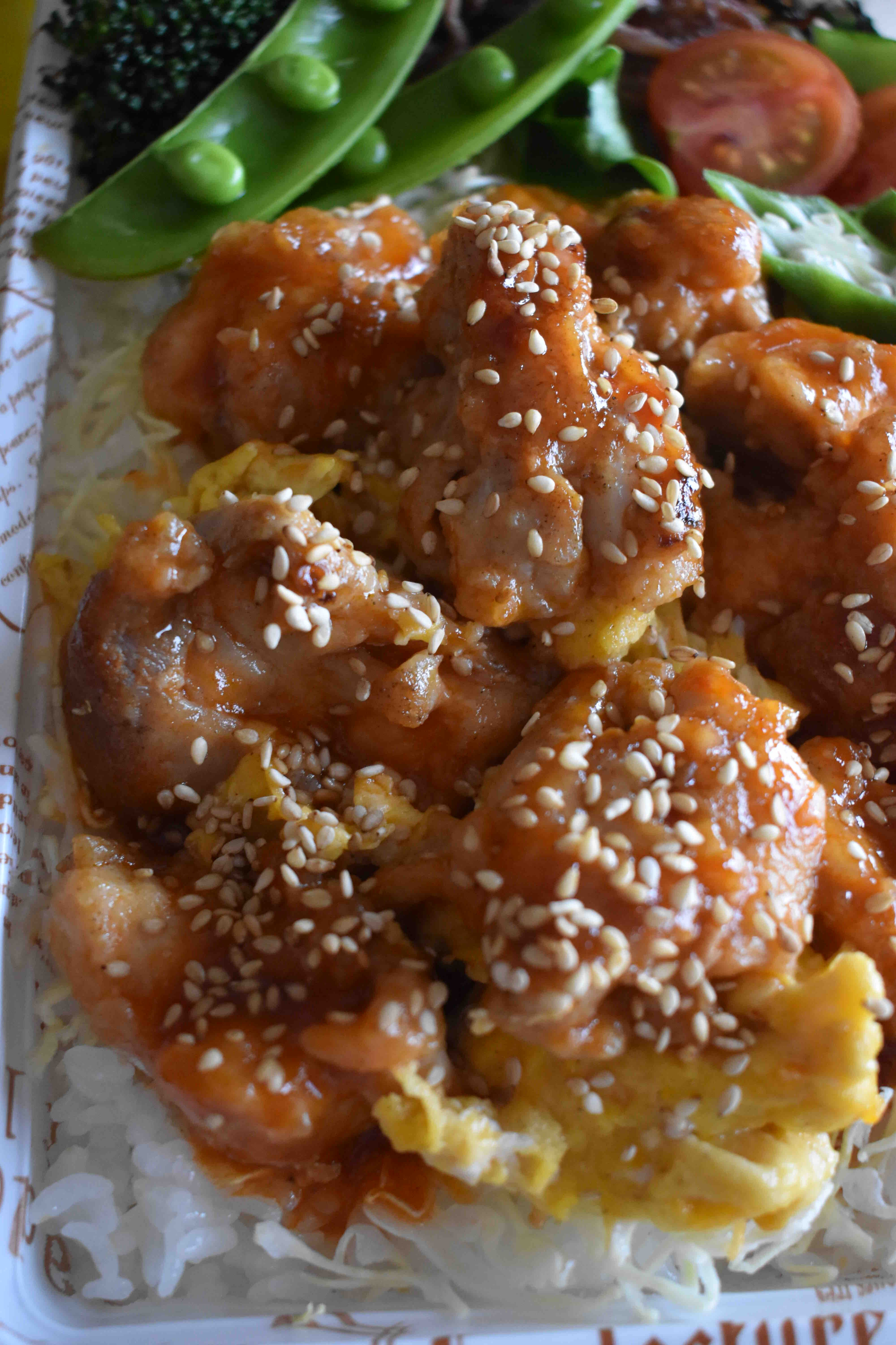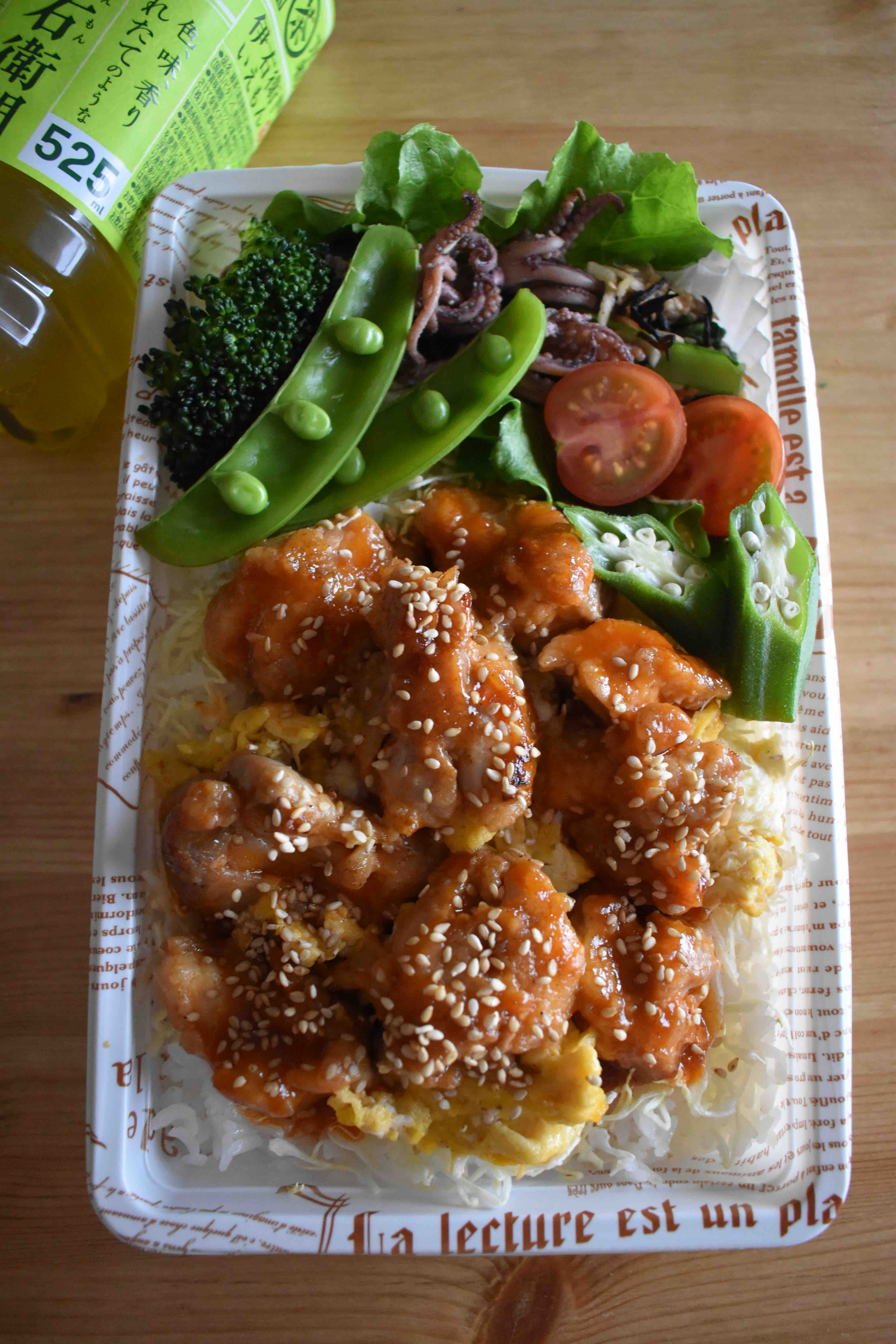 鶏肉を甘辛くケチャップベースのタレに合わせて作りました。
