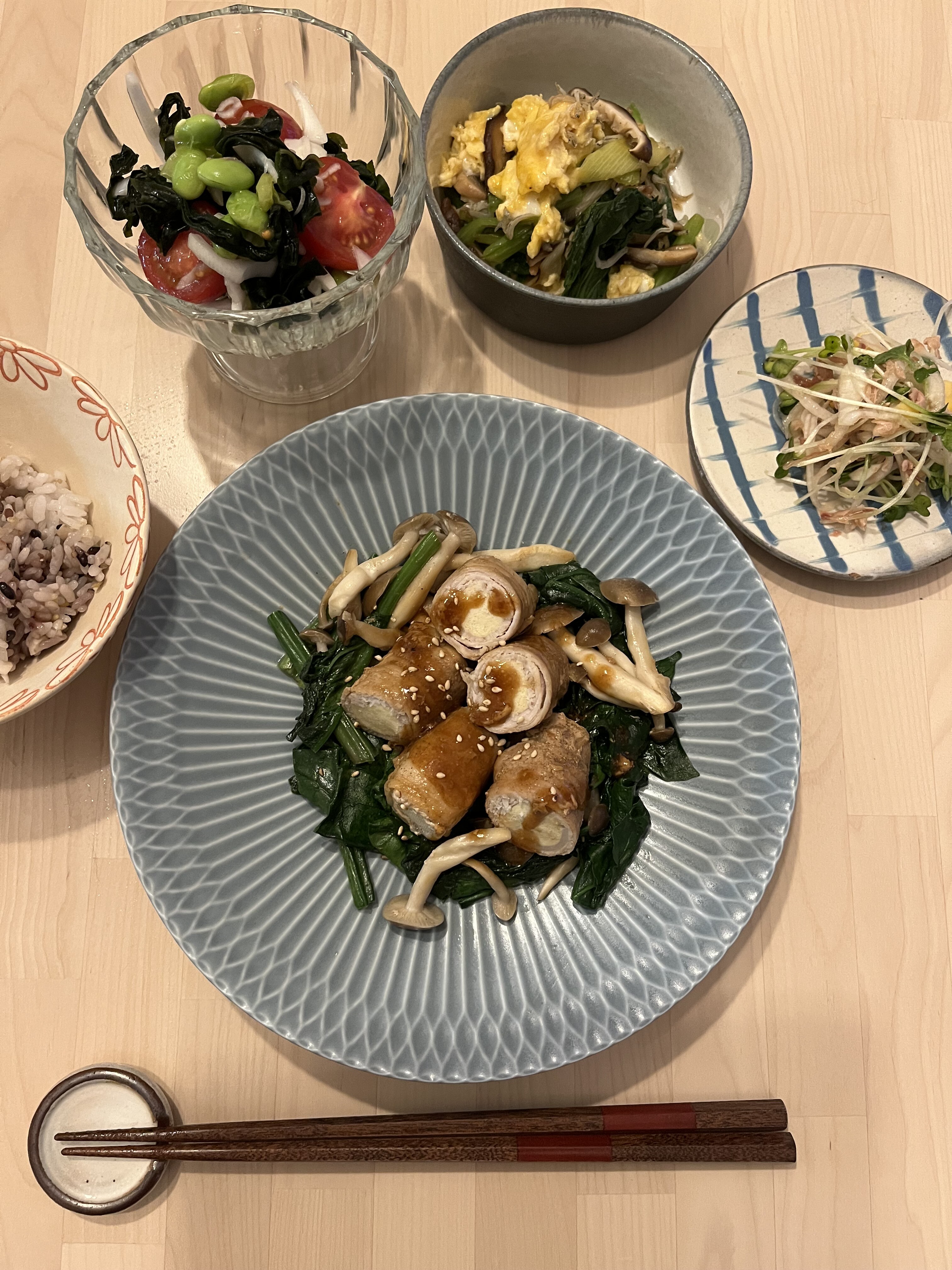 肉巻き高野豆腐〜ほうれん草&しめじソテー