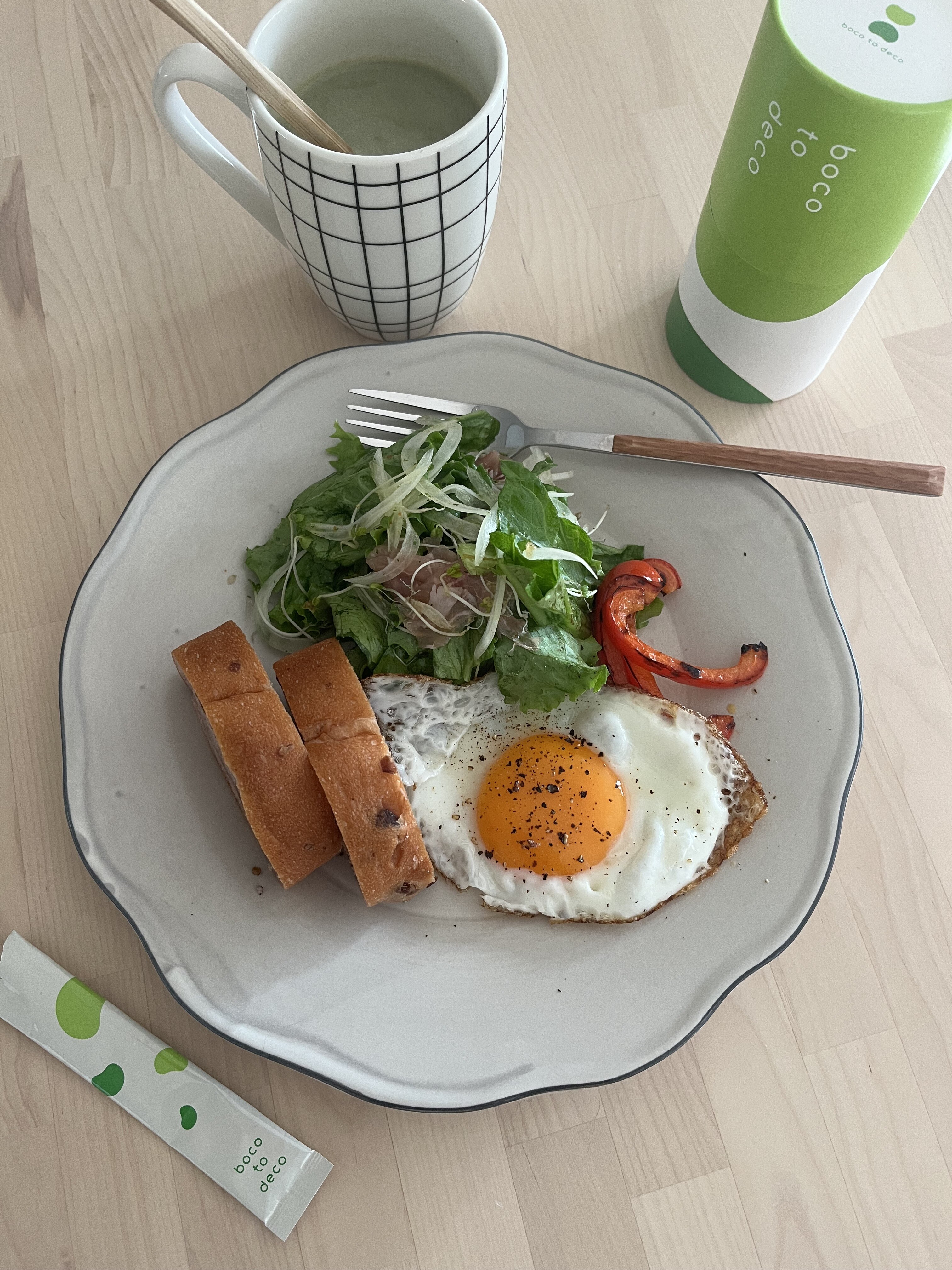 今朝はパンに目玉焼きにサラダ…で簡単に。