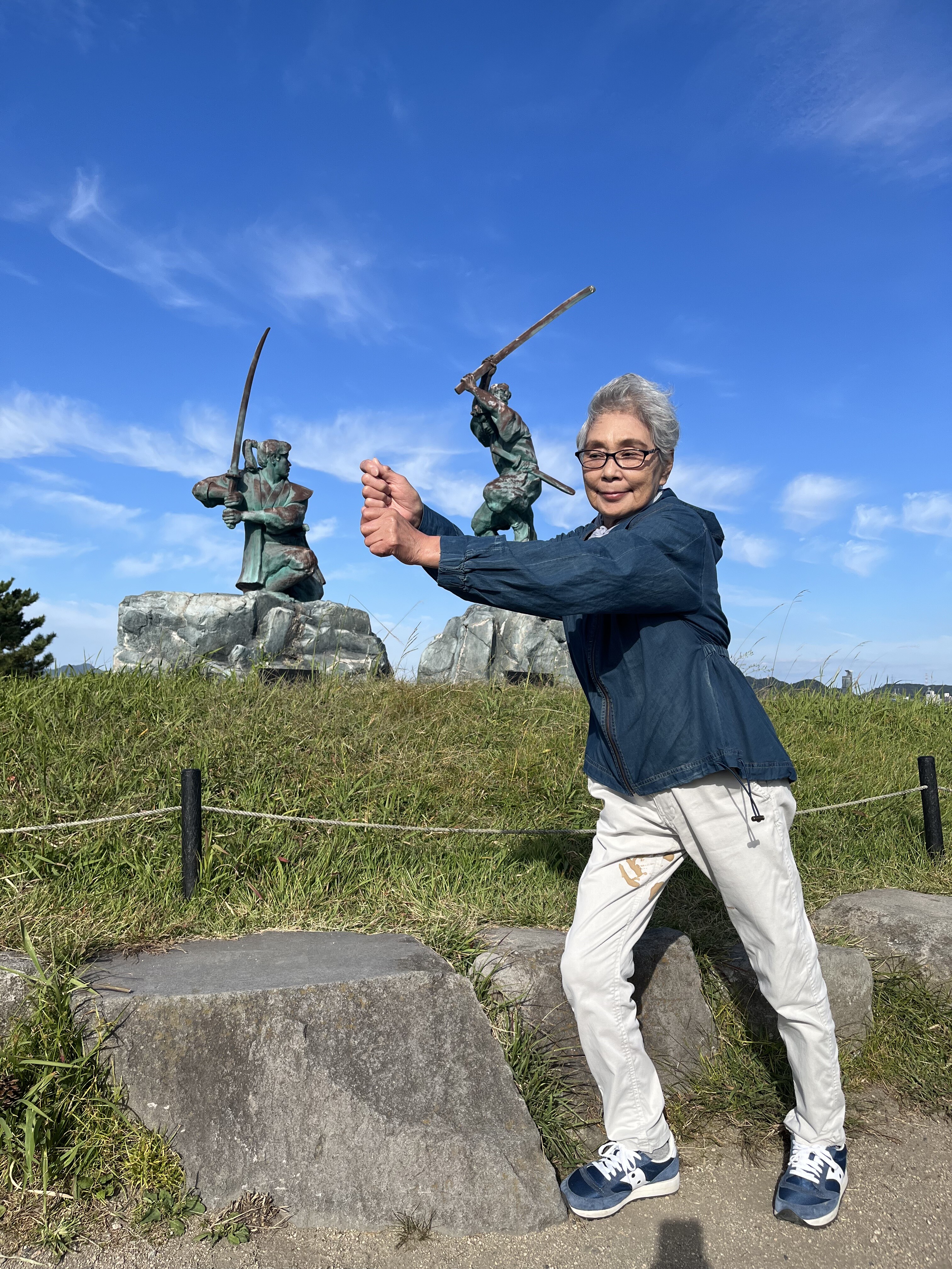 宮本武蔵と佐々木小次郎の戦っている銅像の前ではこのポーズ(≧∀≦)