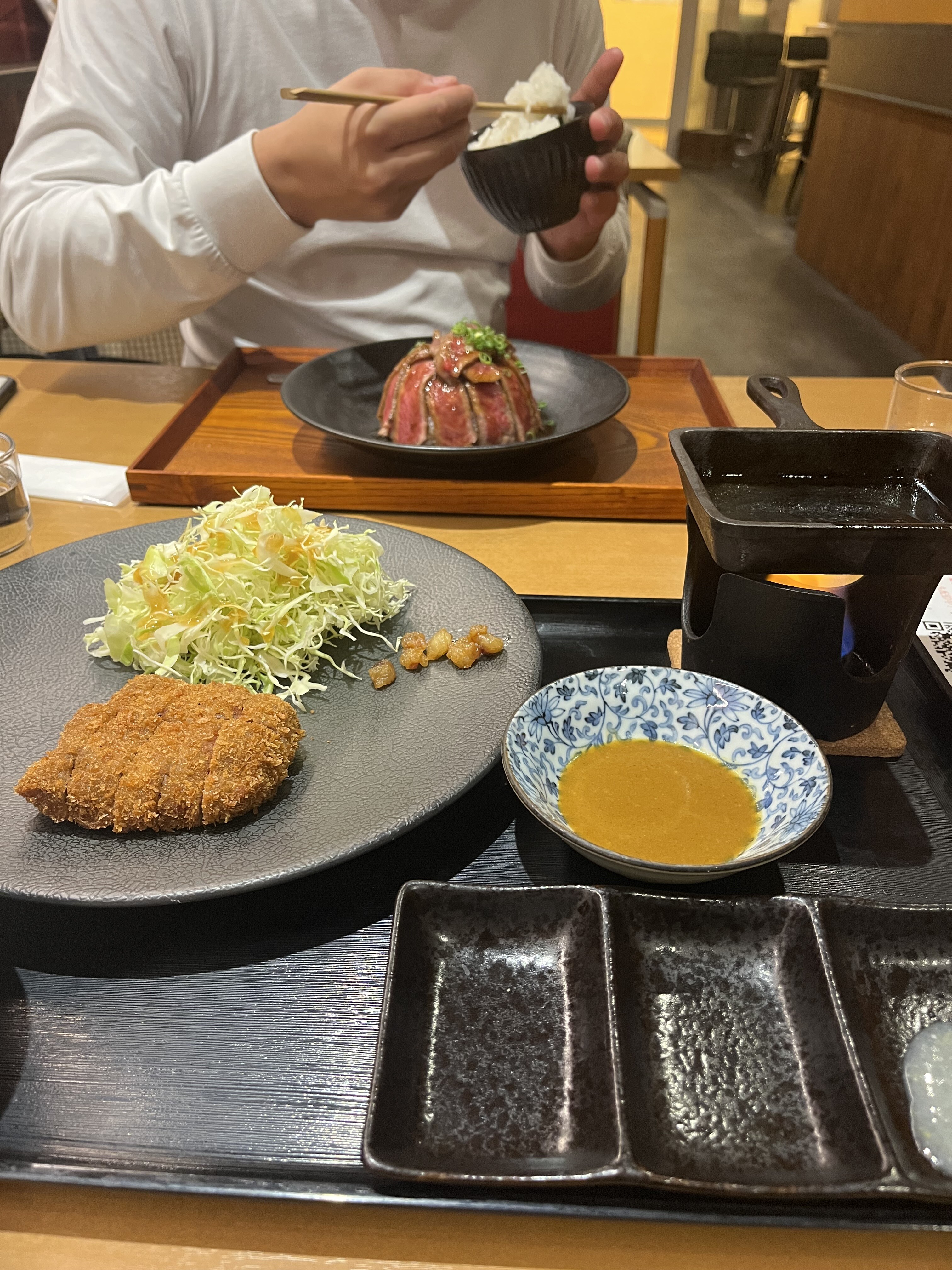 黒毛和牛の牛かつ御膳をご馳走してもらいました^^