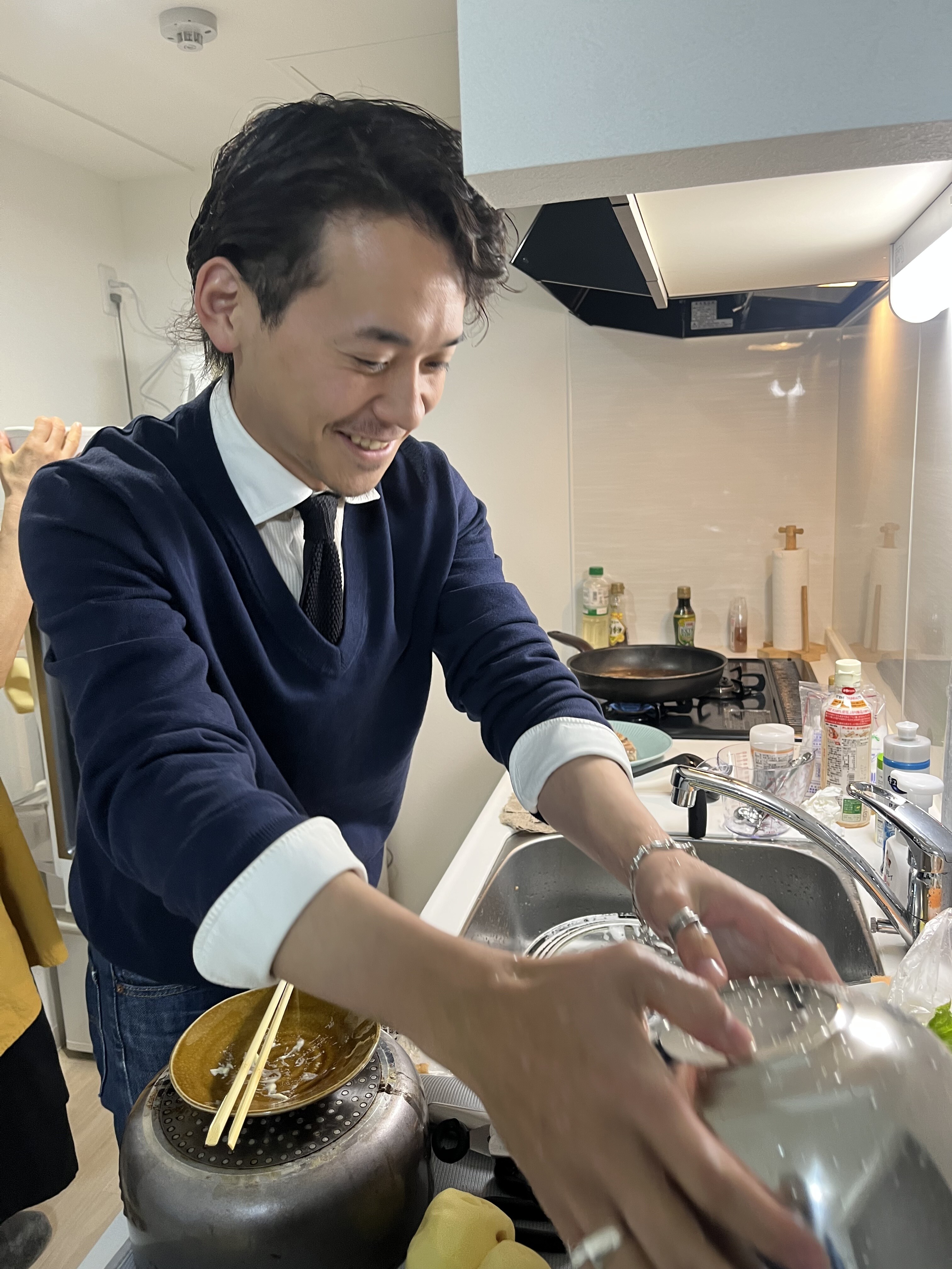 出来上がりをちょこちょこ食べる吉澤くん。笑